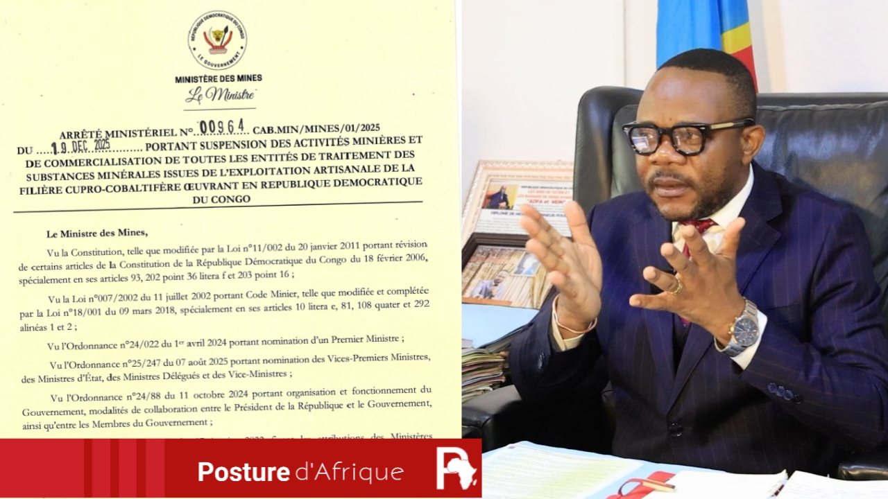 La signature de l’Arrêté du Ministre des Mines, Louis Watum Kabamba, suspendant à titre...
